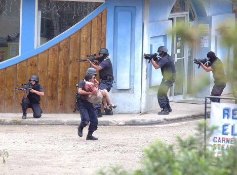 KDO: Kolem půl třetí odpoledne vpadnou čtyři muži, vedení Erlym Hurtadem, do banky a bez rozpaků začnou střílet. Během přestřelky se strážnými padnou hned dva z lupičů. Dalším dvěma se podaří dostat do banky a vzít rukojmí.