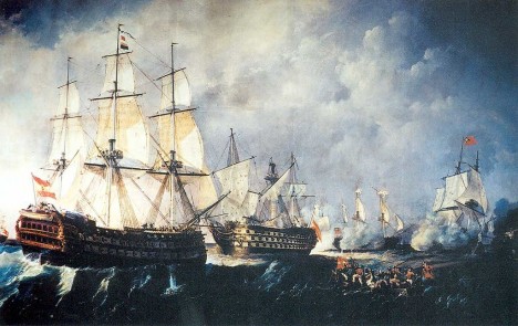 Po úpravách, provedených v roce 1795, může kolosální čtyřveslice nést 140 děl! Posádka má více než 1000 členů. „Vzdejte se!“ volají na své protivníky Španělé, když jejich galeona přirazí k boku britského plavidla.