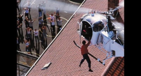 Útěk: Zločincům by se útěk nikdy nepovedl bez komplice Mathieua S. Marchisia (21), který kvůli nim v neděli 17. března 2013 unese vrtulník. Jeho pilota přinutí doletět nad věznici. Dolů hodí lano, po kterém vězňové vyšplhají nahoru.