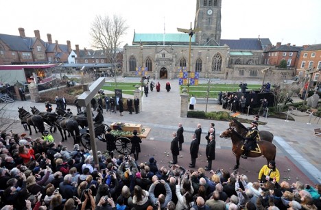 Včera v odpoledních hodinách byly ostatky po mnoha měsících vědeckého zkoumání převezeny do zdejší katedrály. Zde budou Richardovy kosti vystaveny pro veřejnost až do středy 25. března. O den později pak definitivně spočinou pod zemí.