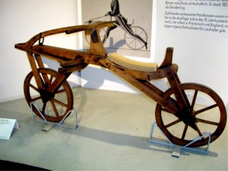 Aby mohl rychle překonat vzdálenost ke své lásce, kupuje si dokonce drezínu se dvěma dřevěnými koly, která se uvádí do pohybu odrazem nohou od země: „Ona nejen lásce krátí dráhu, než jak tělo učí držeti, tak i ducha vždycky rovnováhu.“