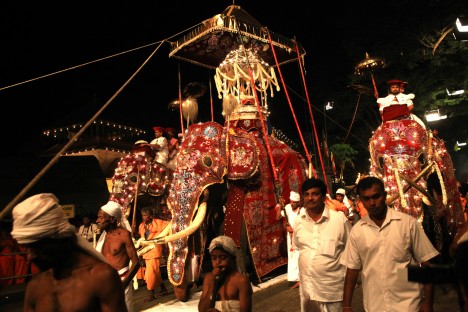 Téměř stovka vyšňořených slonů, stovky bubeníků a tisíce tanečníků z celého ostrova předvádějí show, při které se tají dech. Show, jejímž středem je slon, nesoucí na svém hřbetě posvátný Buddhův zub. Desetidenní mimořádné oslavy mají svůj původ už ve 4. století.