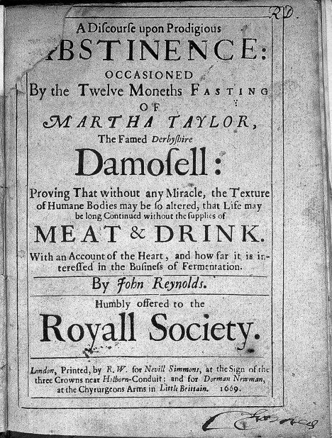 1669 Copyrighted work available under Creative Commons Attribution only licence CC BY 4.0 https://creativecommons.org/licenses/by/4.0/“ width=“468″ height=“618″ /> Podle této knihy v roce 1669 se jedna žena postila 12 měsíců.[/caption]