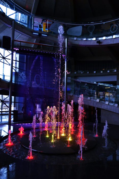 Vyzdvihli bychom ještě expozici na téma „vodní svět“, kde nás zaujala především vodní stěna a fontána s gejzírem tryskajícím až do třetího podlaží.