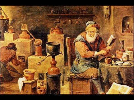 Derviš mu vykládá o kameni mudrců – bájné látce, která umožňuje proměnu jakéhokoli kovu ve zlato, učiní svého vlastníka nesmrtelným a rovněž mu přinese schopnost: