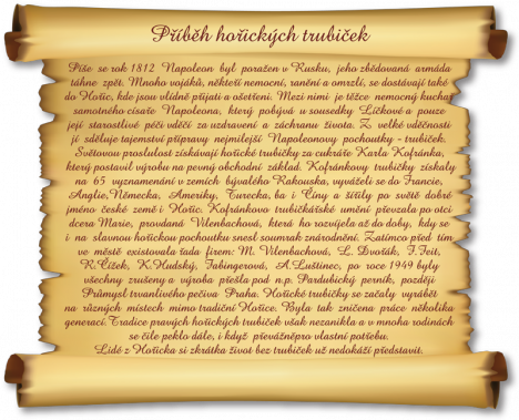 Prvenství si Hořice ale ve výrobě sladké pochoutky připisovat nemohou, protože historie trubiček je mnohem delší. Pochutnává si na nich nejenom Napoleon I. Bonaparte, ale dokonce už francouzský král Ludvík XIV. (1638–1715).