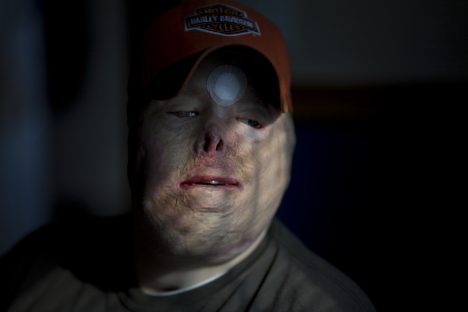 Z levé ruky zbude jen pahýl a z té pravé jsou mu lékaři nuceni amputovat tři prsty. Ničivá síla ohně zdevastuje obličej, uši, rty i většinu nosu. Následující měsíce jsou pro Renee zkouškou odvahy a charakteru.