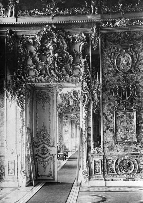 Když Němci obsadí palác, jeden z vojáků zvědavě odtrhává roh jedné podezřelé tapety. Jantar se zablýskne. Komnata je během 36 hodin rozebrána, zabalena do 27 velkých beden a odeslána do Královce.