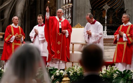 Tady třeba pročítá zprávy o budoucích biskupech, které má jmenovat, píše a rediguje projevy nebo telefonuje.