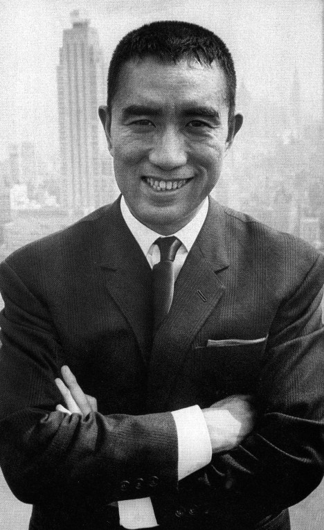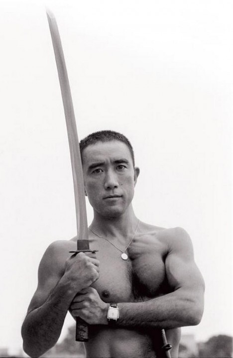 Muži dole ho dobře znají – je to Kimitake Hiraoka (1925-1970), známější jako Jukio Mišima. Spisovatel, básník, dramatik a herec, autor desítek novel, povídek a divadelních her, třikrát nominovaný na Nobelovu cenu za literaturu. A už za chvíli zemře.