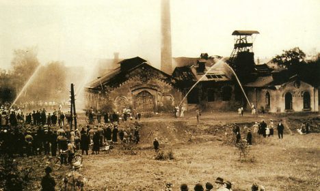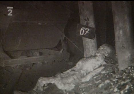 Tady je sice zastaví kordon hlídek, ale i přes zátaras je jasné, že se muselo stát něco strašného. Těžní věž je vychýlena, výtah exploze vymrštila až do lanovny. Všude jsou trosky, všude hoří, dým se valí z jámy i větracích šachet.