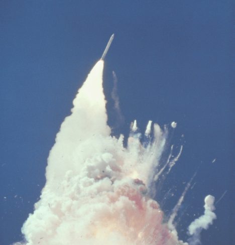 Ztuhlé těsnění se neroztáhlo, žhavé spaliny unikají ven. Minutu po startu plameny propálí stěnu hlavní nádrže, ve které se nachází 2 000 000 litrů výbušného kapalného vodíku. Po 72 vteřinách letu vybuchující palivo proráží dno nádrže s kyslíkem.