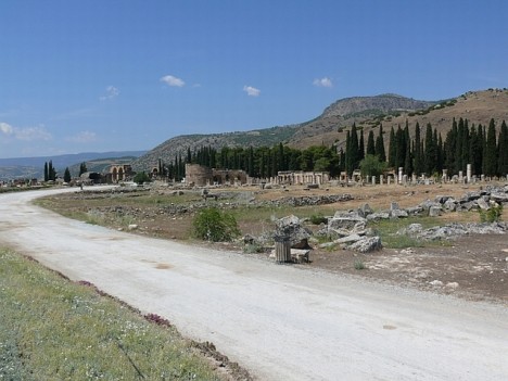 Pouhých pár metrů nad běloskvoucím Pamukkale se rozkládá řecko-římské lázeňské město. Známe ho coby Hierapolis, dnes již v ruinách upadající slávu. Brány a torza domů plynule přechází v dlouhou třídu majestátních hrobů. Chodilo se sem umírat?