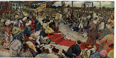 10. ledna roku 1775 už stojí sám Pugačov na popravišti v Moskvě. Za trest je mu useknuta hlava, jeho tělo je pak rozčtvrceno a pro výstrahu vláčeno ulicemi!