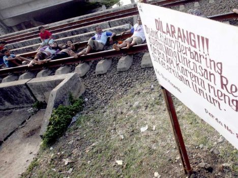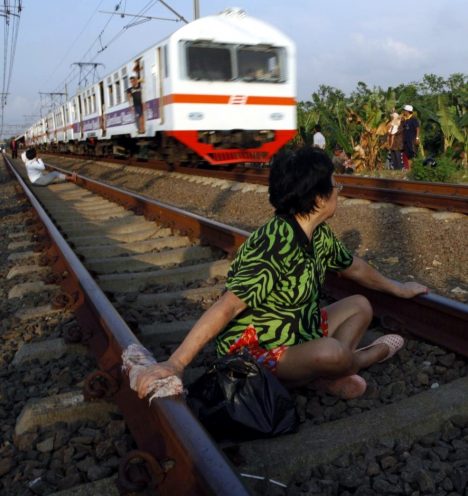 Titulek není cynickou radou, jak by se na první pohled mohlo zdát. A lidé, kteří se na západě ostrova Jáva vrhají na koleje, nejsou sebevrazi. Ani neprotestují proti změnám jízdního řádu tím, že by vlastními těly blokovali železniční tratě. Jen se rozhodli revolučním způsobem zatočit s nemocemi.