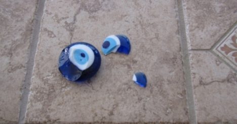 Pokud je proti vlastníkovi nazaru vyslána zlá síla, negativní energie a moc modrého symbolu se prý střetnou, což se projeví tak, že amulet praskne. A skutečně se nezřídka stává, že turecké oko praskne jen tak bez příčiny.