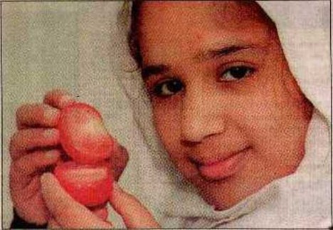 V roce 1997 vzbudí v muslimské komunitě ve Velké Británii rozruch objev čtrnáctileté školačky Šajsty Džaved. Ta při rozkrojení rajčete nalezne mnohem delší nápis, než prosté „Bůh.“ Na jedné polovině rajčete se skví arabská slova: