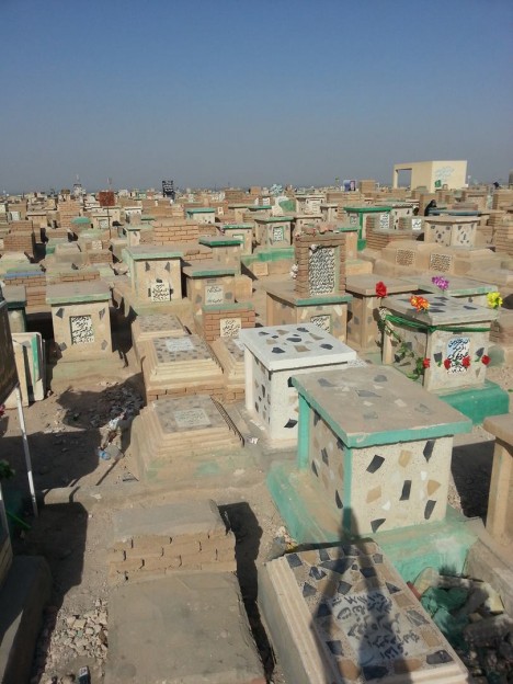 Kolem dokola hrobky Alího Ibn Abiho Táliba se tísní hlava na hlavě. Moc nechybí k tomu, aby se návštěvníci vzájemně ušlapali. Všichni chtějí uctít památku svého duchovního. Kam až lidské oko dohlédne, tyčí se dlouhé řady hrobek.