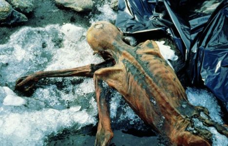 V horském sedle ötztalských Alp, ve výšce 3210 metrů, poklekne stárnoucí válečník u mělké prohlubně s vodou. Je unavený. Přesto, když za sebou zaslechne zapraštění natahované tětivy, sáhne po noži. Je však pozdě. Letící šíp v ledovém vzduchu tlumeně hvízdne a vnikne mu hluboko do zad.
