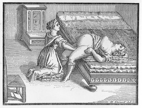 Jistým hmatem obrátí dítě na nožky a pomalu ho táhne ven. Je prvním lékařem, kterému se podobné operace úspěšně daří! Není jednoduché se je naučit, i římský spisovatel Plinius mladší (61 – 113/115) tvrdí:
