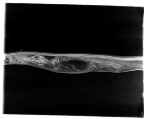 Dvojice amerických biologů Stephen Secor a Scott White pořídila sérii rentgenových snímků, které zachycují proces rozkladu mládě aligátora v útrobách ohromné krajty. Můžete tak pozorovat den po dni, jak had tráví tento opravdu opulentní oběd.