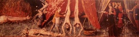 Otrhaný bojovník vběhne do domu. Když ve světnici uvidí drobnou židovskou ženu, jak u kamen připravuje jídlo, vrhne se na ni s mečem a probodne jí hruď. Vtom se rozbrečí dítě ležící vedle v kolébce. Rozzuřený muž neušetří ani nedávno narozené miminko. Násilnostem bohužel nemá kdo zabránit…
