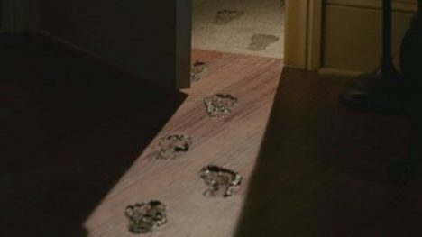 Průvodkyně se lekne. Na zámeckých parketách se vyjímají černé blátivé šlápoty. Zdá se, že jde o otisky bosých nohou. Dostal se snad do barokní stavby nějaký vandal? „Otisky bosých nohou se na zámku objevily poprvé před osmnácti lety.