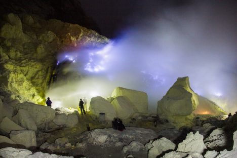 Nedaleko jezera naplněného kyselinou se už po čtyři desetiletí těží síra, a to tím nejprimitivnějším způsobem – ručně. Práce v tomto dole patří k nejtěžším a nejhůře placeným zaměstnáním na světě.