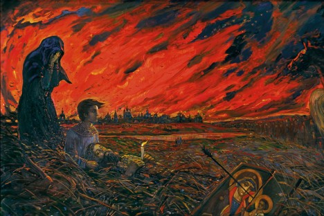 „Hoří, hoří,“ vykřikuje muž. Francouzský císař Napoleon I. Bonaparte se svými vojsky plení v roce 1812 ruskou metropoli. Bohatí Moskvané, kteří si postavili honosné domy na náměstí, přijdou o svůj majetek. Jenže to není všechno. Císař chce rozebrat jejich chrám a vzít si ho s sebou do Paříže.