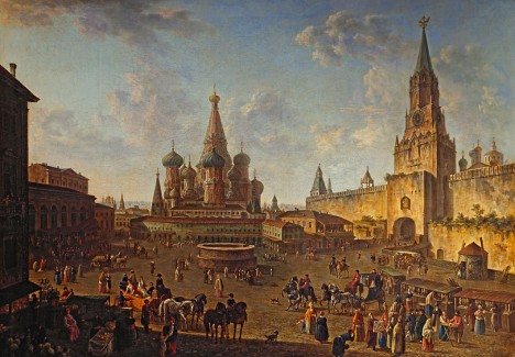 V době středověku je Moskva spíše menší vesnicí. V kruzích se rozšiřuje dál kolem středu, který tvoří Kreml a několik kostelů v jeho blízkosti. Na ochranu roste Kitaj gorod, město obchodníků, kteří potřebují trh. Prodávají na něm své zboží.
