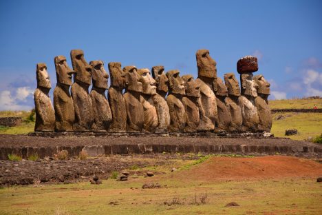 Sochy moai mají zvláštní klobouky z červeného kamene. Klobouky ovšem mohly být i stylem účesu, který na ostrově zrovna „frčel“.