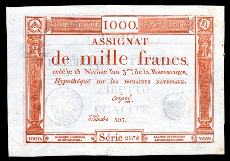 Skotský ekonom John Law (1671–1729) přesvědčí Filipa II. Orleánského (1674–1723), regenta vládnoucího za nezletilého Ludvíka XV. (1710–1774), aby ve Francii zavedl papírové peníze a tím snížil obrovský státní dluh.
