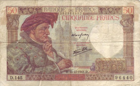 Obsah francouzského franku se roku 1803 definuje ve stříbře na 5 g a ve zlatě na 0,32 g. Razí se nejenom stříbrné, ale i zlaté mince v podobě francouzského dvacetifranku z doby vlády Napoleona I. Bonaparta (1769–1821).