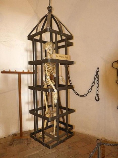 „Tato klec stála vždy na prostřed rynku pro potrestání kurev neb padlých osob. Ten trest byl na dvě a více hodin, obyčejně před polednem, když děti a studenti ze školy šli, kdež také to samé na ni smradlavý vejce, bláto a jiný neřád házely.