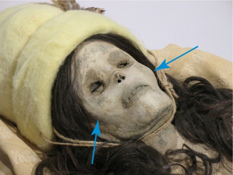 Asi 50letý muž měl tetování na tváři. Dítě bylo zase uloženo do rakve s lahvičkou z kravského rohu a dudlíkem z ovčího vemene.