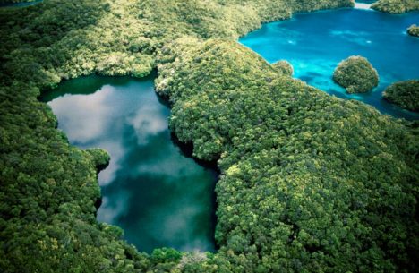 Jezero Ongeim’l Tketau je zvláštní v mnoha ohledech – s okolním mořem je například spojeno pomocí prasklin a podmořských tunelů ve skalách pod hladinou. Jeho voda má také speciální vlastnosti.