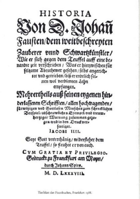 Podivné chování skutečného Fausta je příčinou, že se o něm už za jeho života šíří čarodějné pověsti. Každý si k příběhu něco přidá a z několika historek vzniká barvité líčení celého jeho života, které v roce 1611 vychází tiskem i v češtině.