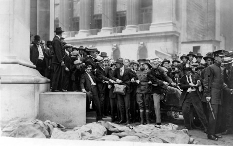 Už v roce 1920 byla newyorská Wall Street rušnou třídou obchodníků a finančníků. V okolních domech pracovaly kromě bankéřů také stovky poslíčků, písařek, sekretářek a úředníků.