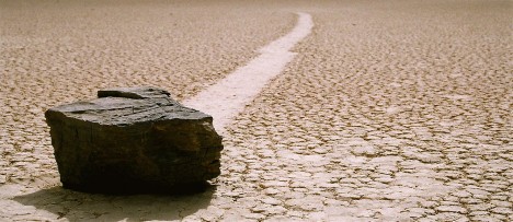 Vyschlé jezero Racetrack Playa ležící v tajemném Údolí smrti v Kalifornii je již po desetiletí dějištěm zvláštní záhady. Kameny, které na něm leží, se totiž čas od času samy od sebe pohybují.