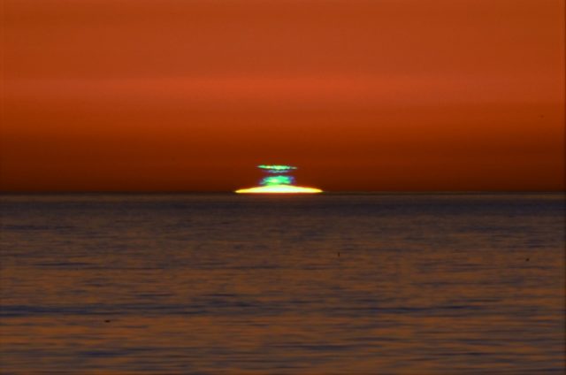 O co jde: zelené světlo, vycházející při východu nebo západu Slunce