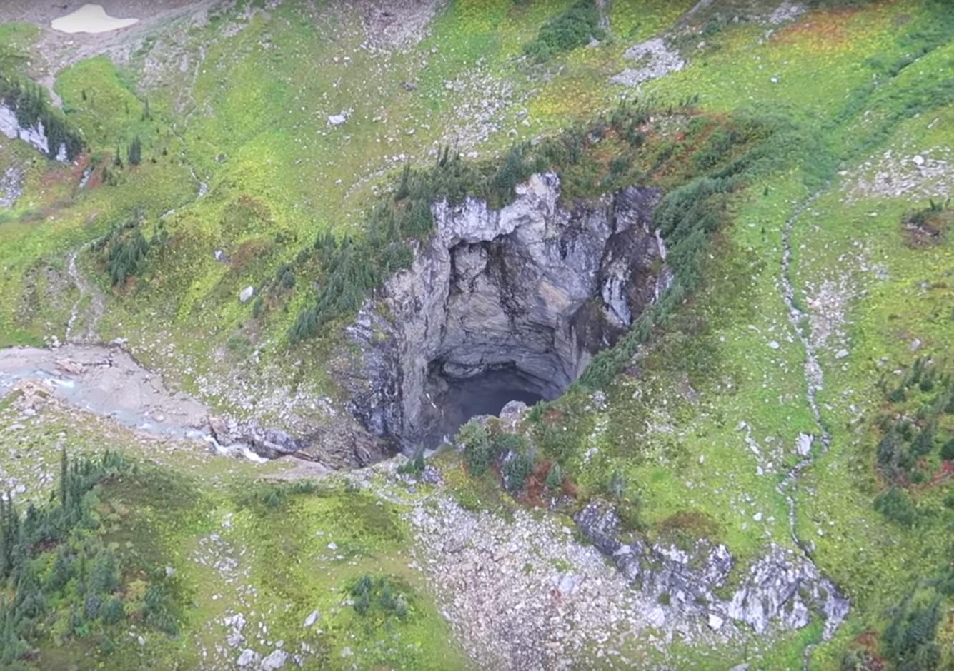 Jeskyně leží v národním parku Well Gray Provincial Park, skrytá zůstávala, i přes své obří rozměry, díky sněhové pokrývce. Ta však nyní zmizela a odhalila tak ústí jeskyně.