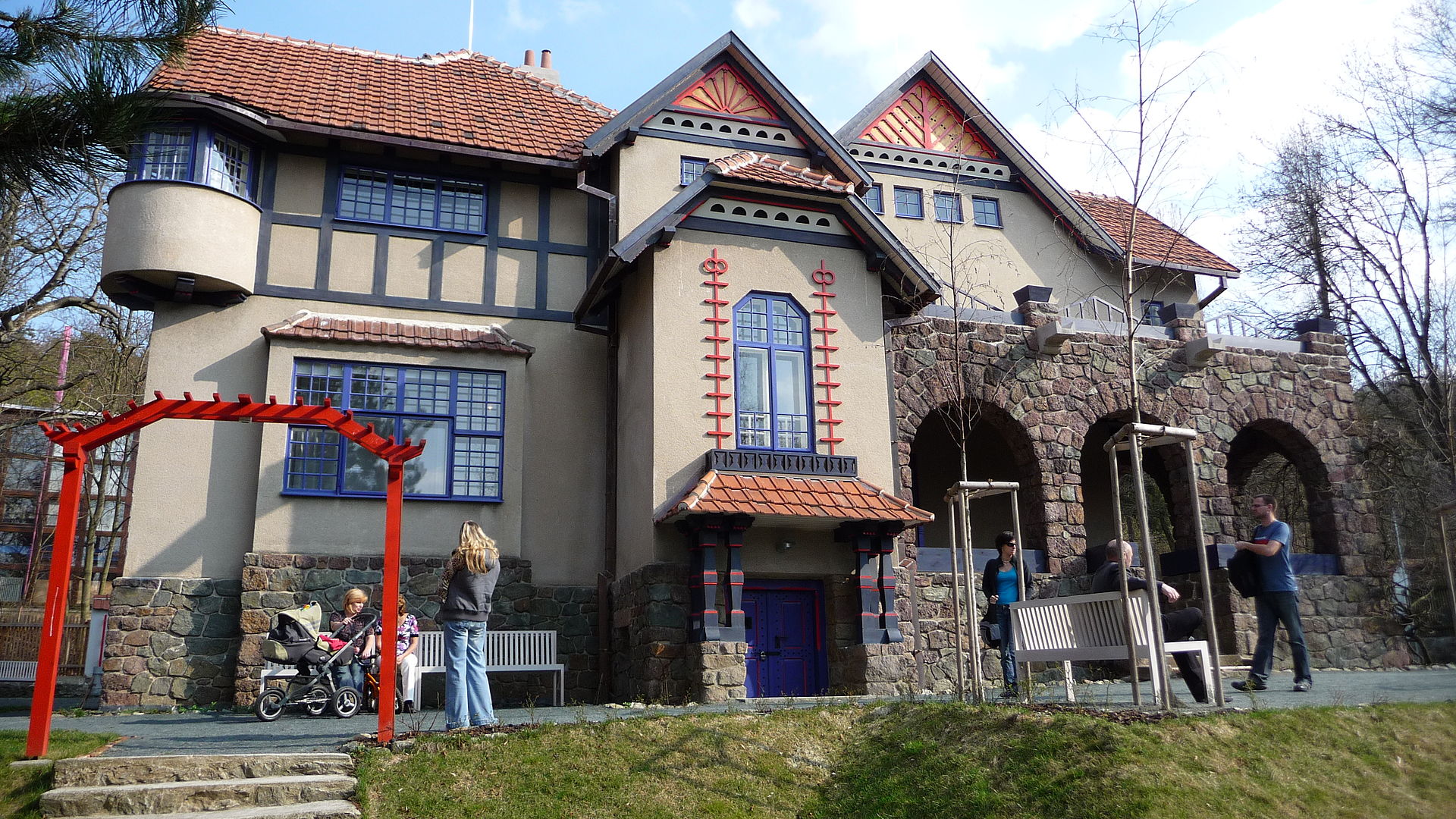 V letech 1905–1906 si tu staví originální dům ve venkovském stylu, kterému kvůli barevnosti přezdívají „perníková chaloupka“.