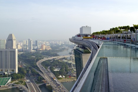 Zaplavat si 200 metrů nad zemí? I to je možné. Městský stát Singapur nabízí tuto raritu v hotelovém komplexu Marina Bay Sands. Měří rovných 150 metrů! Díky přepadávající vodě zde není vidět žádný ostrý konec bazénu. Voda jakoby náhle přecházela v oblohu kolem.