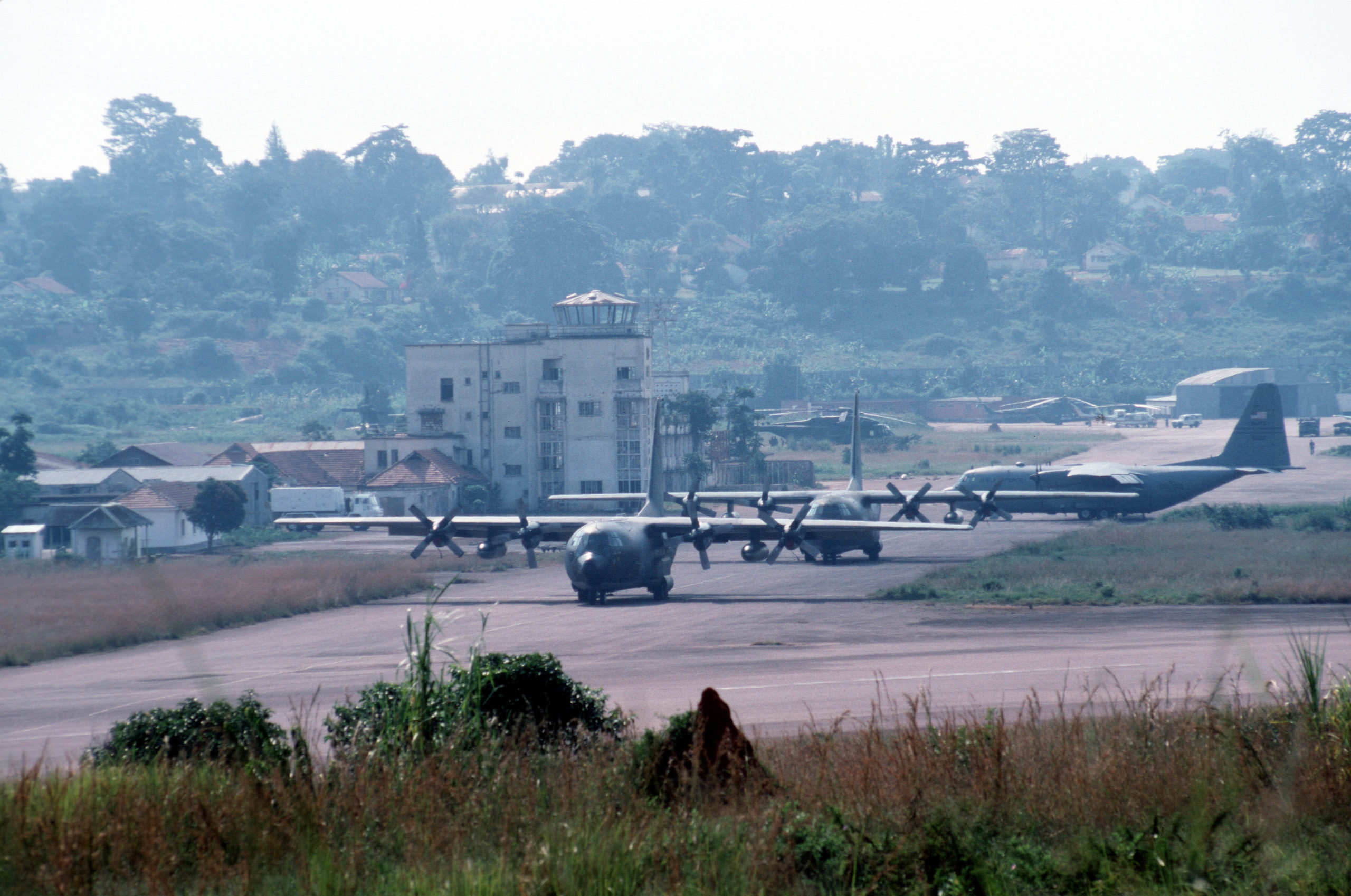 Kvůli radarům musí udržovat letovou výšku nepřekračující 30 metrů! První letoun dosedne na ranvej v Entebbe minutu po půlnoci. Z letadla vyjede kolona tvořená černou limuzínou a dvěma terénními vozy.
