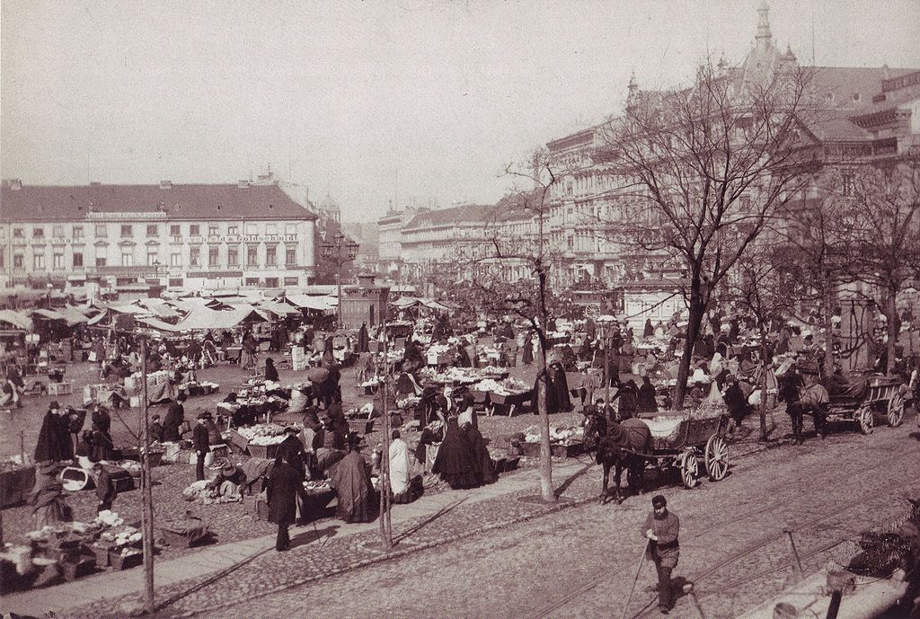 Na náměstí se v roce 1886 staví centrální tržnice a v roce 1904 tu vyroste luxusní obchodní dům bohatého německo-židovského kupce Hermanna Tietze (1837–1907). Zkázu rušnému obchodnímu centru ale přinese jak první, tak i druhá světová válka.