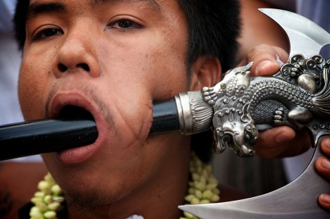 Během oslav spatříte, jak si někteří účastníci propichují ústa i různé měkké části těla těmi nejkurióznějšími předměty, nejrůznějšími nástroji. Dokonce můžete vidět i odvážlivce, kteří si skrz otevřené rány protáhnou celý rám bicyklu. Prostě nic pro slabé povahy!