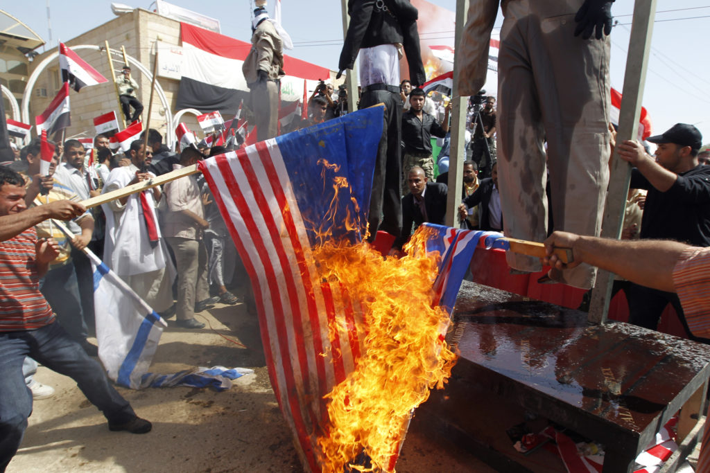 Popularita Spojených států ve světe klesá na dno, v ulicích mnoha měst především Blízkého východu se pálí americké vlajky a podobizny Bushe.