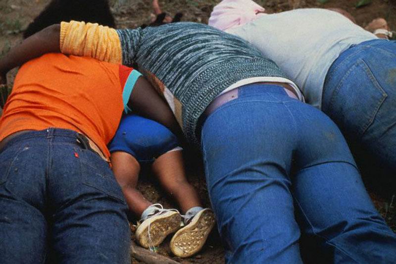 Někteří tak udělají dobrovolně, jiní jsou násilně donuceni – na mnohých tělech jsou později objeveny vpichy po injekčních stříkačkách. Desítky těch, co se pokusí utéct, jsou zastřeleny.