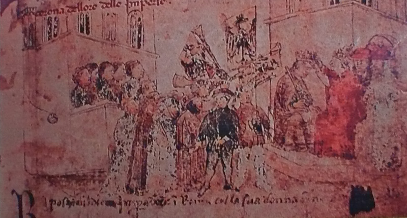 Na korunovační cestu vyráží Karel IV. (1316–1378) ze Sulzbachu (v dnešním Bavorsku) 28. září 1354. Se zastávkami v Udine, Padově, Miláně a Pise míří do Říma. Začátkem února 1355 už jeho doprovod tvoří 4000 mužů.