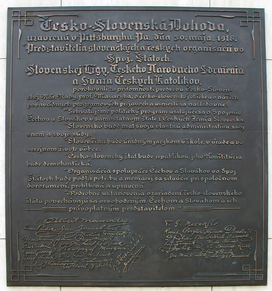 Na Clevelandskou dohodu na jaře 1918 naváže ta Pittsburská o společném soužití Čechů a Slováků v jednom státě. Pod ní už je kromě amerických krajanů podepsán budoucí prezident Masaryk.